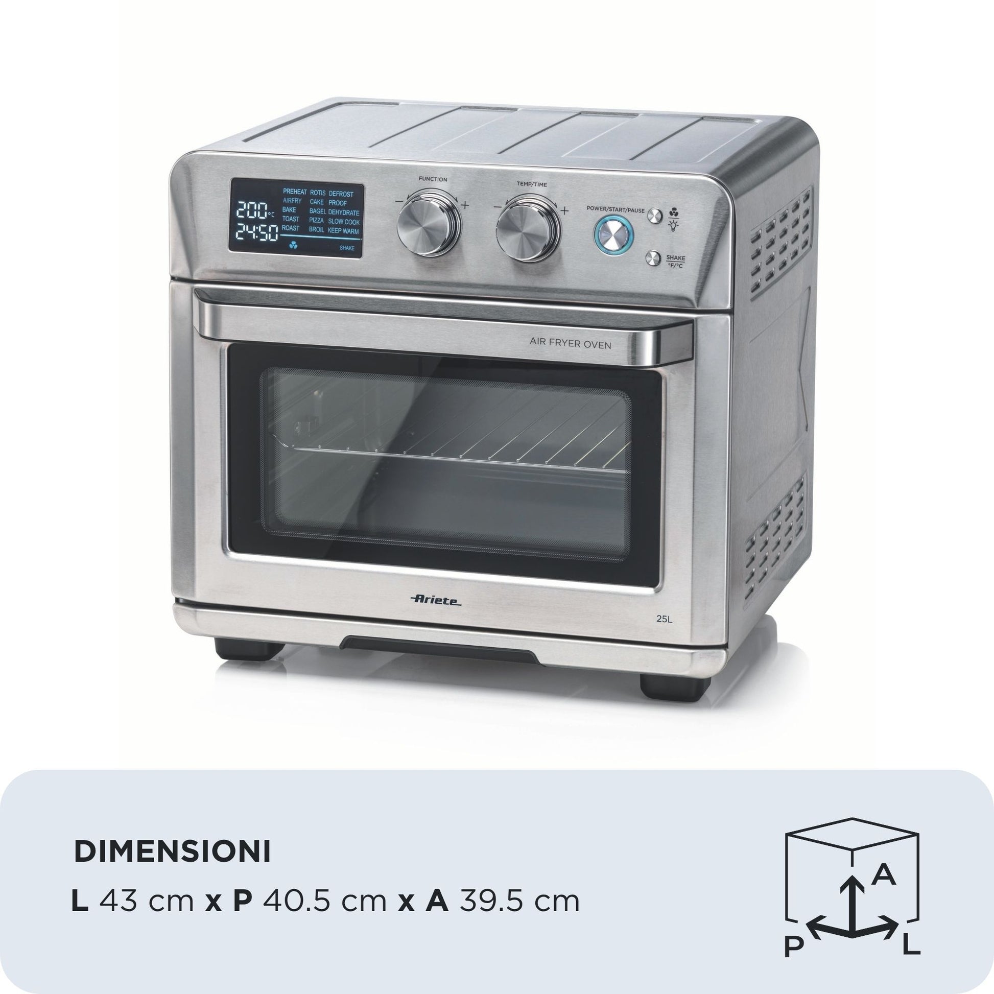 |Friggi come piace a te e alla tua famiglia grazie alle multifunzionalità di Airy Fryer 25L con cui puoi impostare timer, cottura e temperatura.