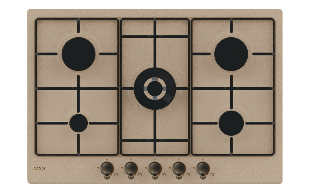 CANDY CHW7AV4WGT | 33802733 | Piano da 75cm avena; Griglie smaltate; 5 fuochi - Bruciatore Centrale DC 4Kw; manopola gold tradis