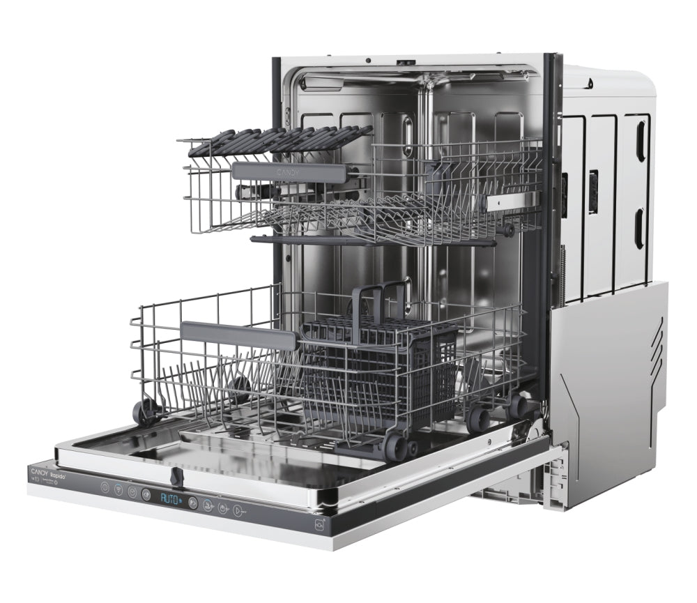 |La nuova Candy Rapido' ha la vasca più spaziosa del mercato (in formato standard) che offre la massima capienza per le stoviglie, anche le più grandi come teglie da forno, taglieri e insalatiere.