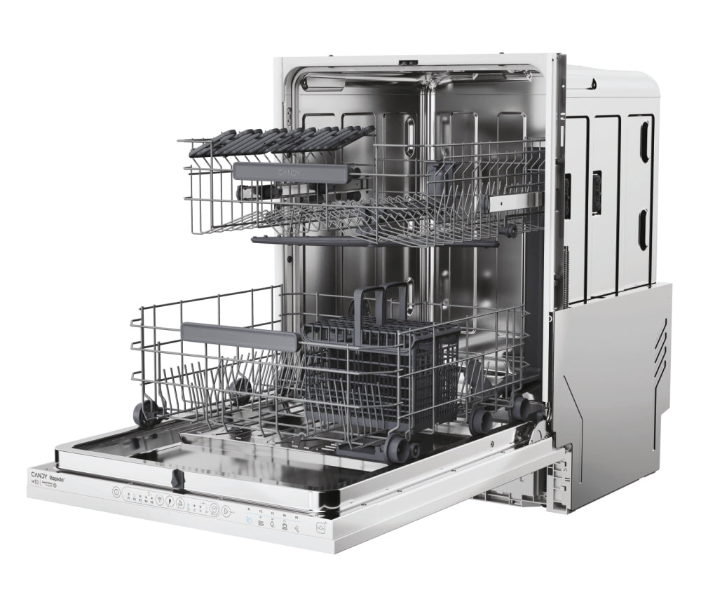 |La nuova Candy Rapido' ha la vasca più spaziosa del mercato (in formato standard) che offre la massima capienza per le stoviglie, anche le più grandi come teglie da forno, taglieri e insalatiere.