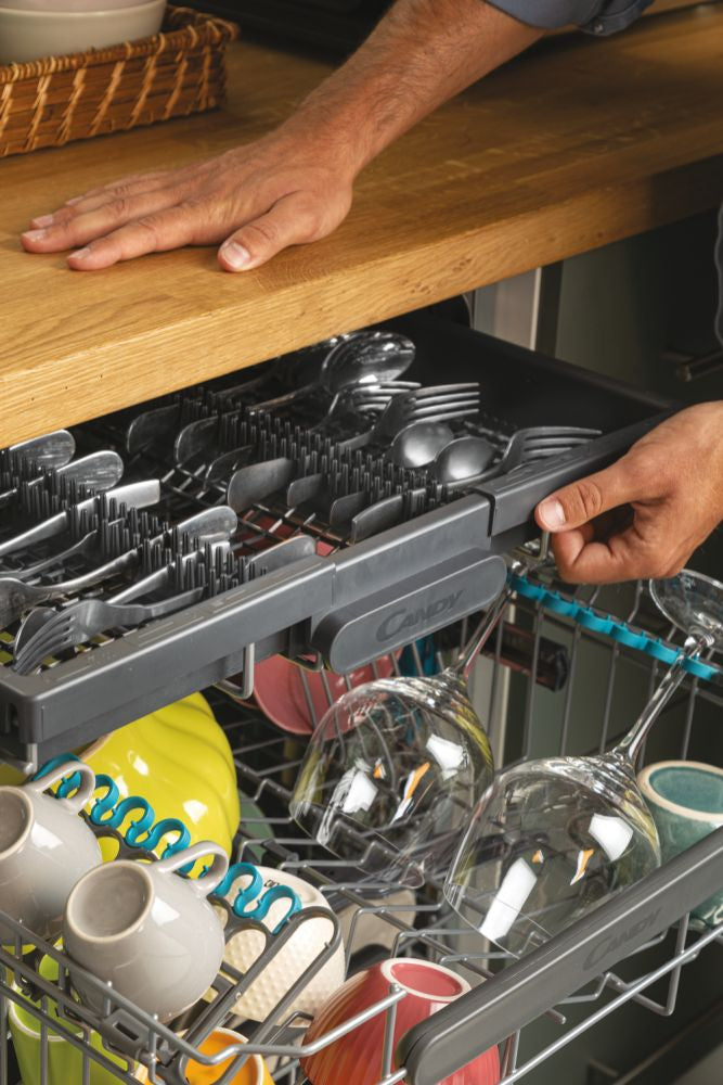 |Il terzo cesto della nuova Candy Rapido' è dotato di una smart legenda, che indica chiaramente dove posizionare le posate per ottenere i migliori risultati di pulizia.