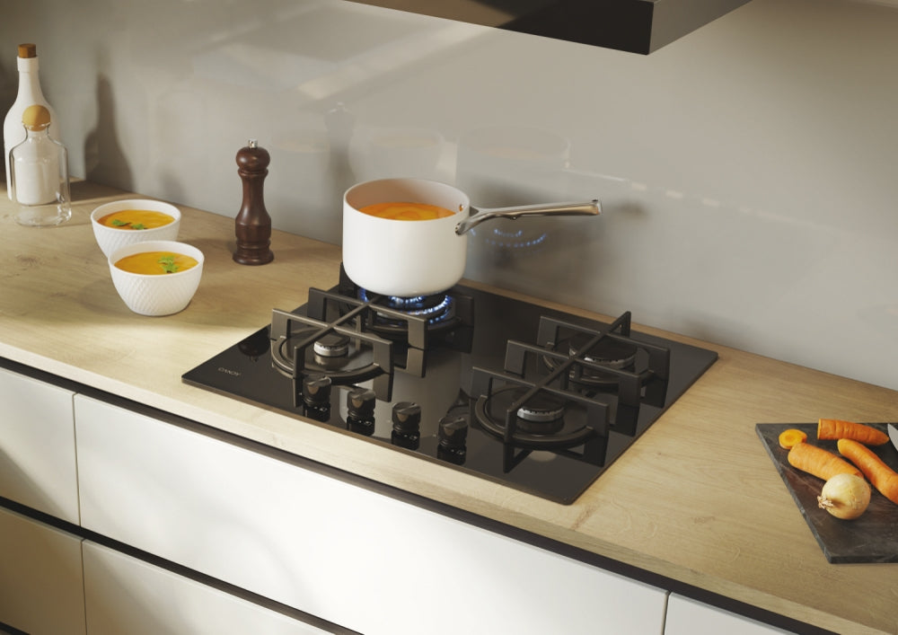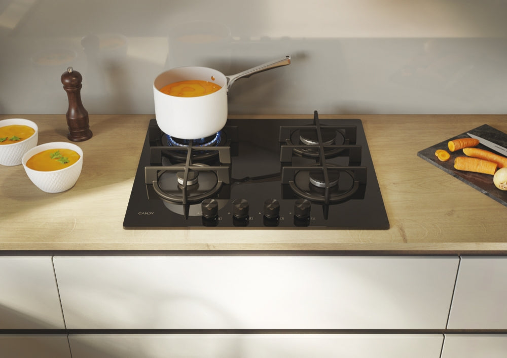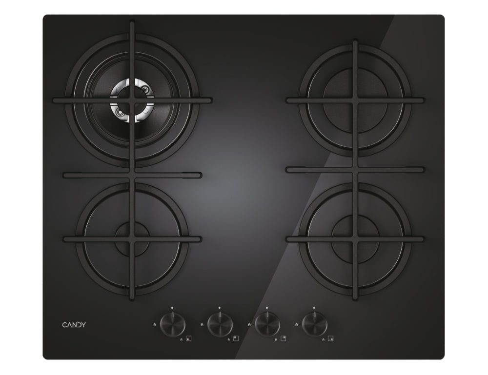 CANDY BI CVG6BR4WTB|33803483|Piano Gas da 60 cm; 4 fuochi; Vetro Nero; Bruciatore speciale posterior