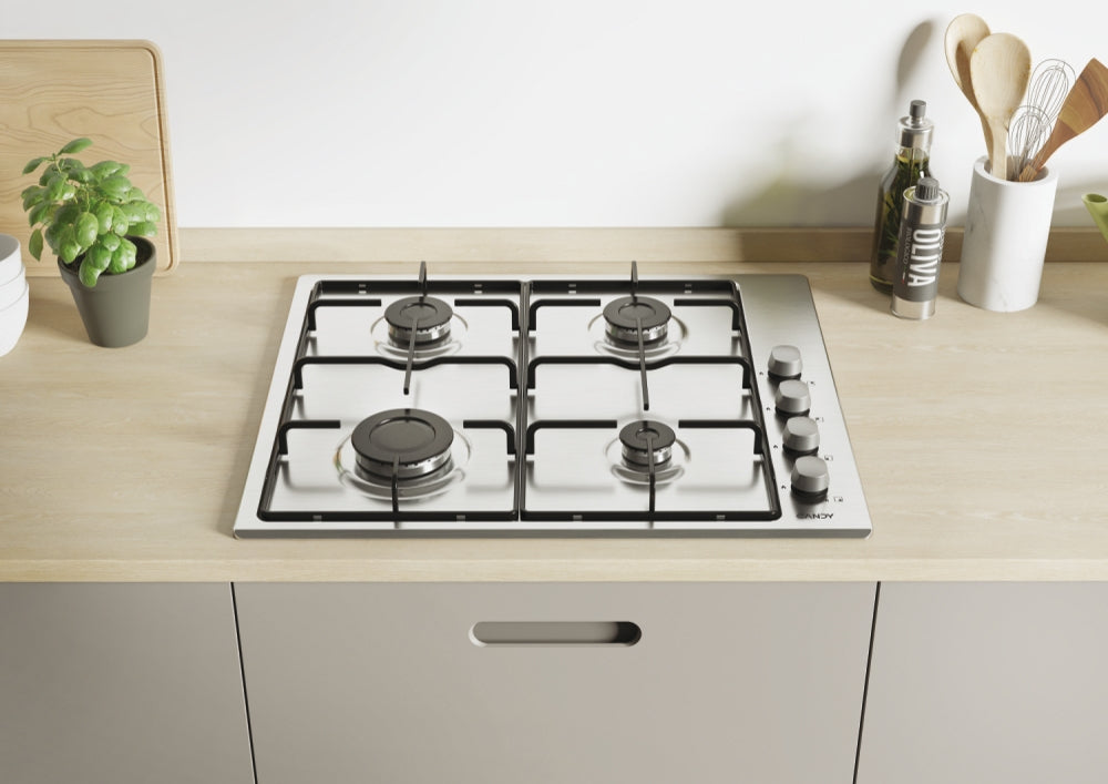 CANDY CHW6LX | 33802049 | Piano Gas da 60cm lateral inox; Griglie in piattina; 4 fuochi Manopola inox;