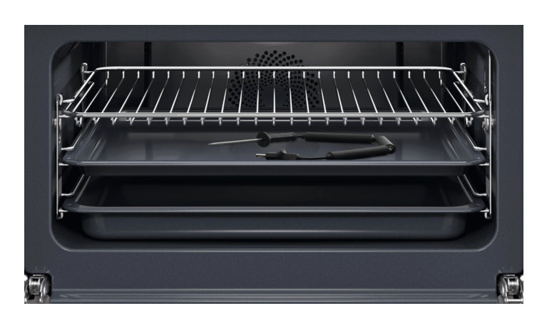 Aria calda per una cottura uniforme||Assicura una cottura perfetta con la ventola ad aria calda. L'innovativo sistema a convezione distribuisce il calore in modo uniforme, garantendo risultati omogenei su ogni livello del forno. Ogni pietanza è cotta alla perfezione, da un angolo all'altro, dall'alto verso il basso.