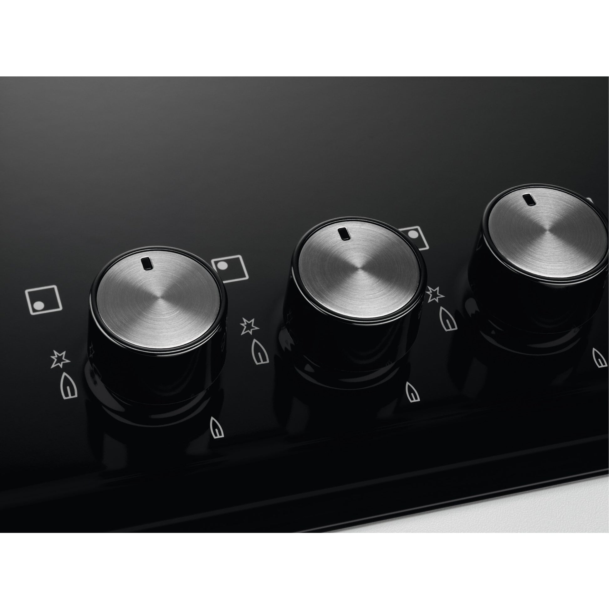 |Le manopole di controllo su questo piano cottura non controllano solo la temperatura, ma anche l'accensione. Combinando in modo intelligente queste due funzioni, Electrolux vi rende operativi ai fornelli in modo immediato. Sarà sufficiente ruotare la manopola per aprire l'alimentazione del gas, premere la manopola verso il basso per accendere una scintilla, e potrete dare vita alle vostre avventure culinarie.