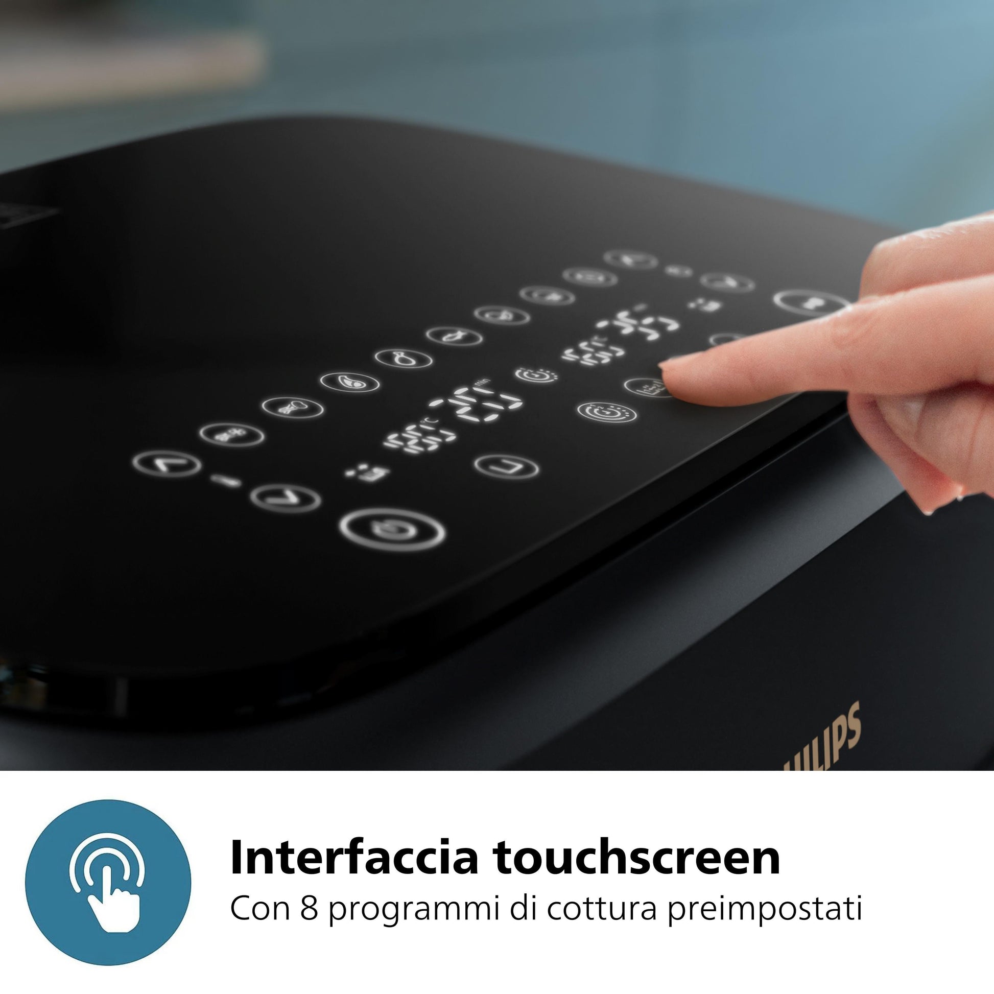 Touch screen con 8 preimpostazioni per cucinare in modo semplice|