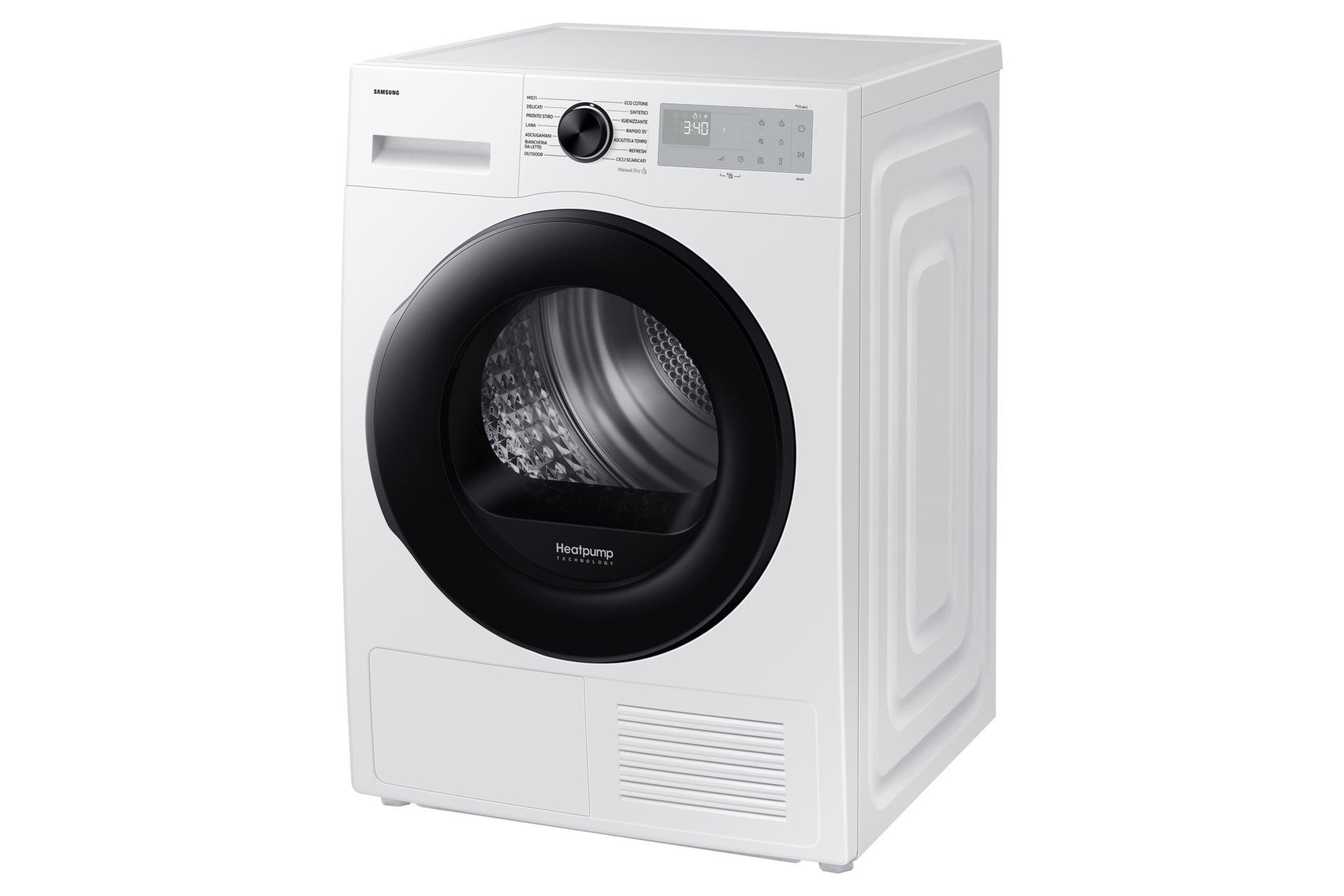 il bucato sarà pronto rapidamente e con un dispendio energetico minimo. In più, evita che i tessuti si danneggino e ti ricorda di pulire lo scambiatore di calore.\n\nAsciutto in tempo record\nQuick Dry 35'\nAssicurati il tuo outfit preferito asciutto e pronto da indossare in tempi record. Con il programma Rapido 35' ottieni fino a 1 Kg di bucato asciutto in soli 35 minuti[4]. Il tuo abito preferito o la tua camicia saranno sempre pronti, quando lo decidi tu.\n\nSempre connessi grazie a SmartThings\nWi-Fi integrato\nTrasforma l'asciugatura in un'operazione semplice ed efficiente con l'app SmartThings[5] "Energy" ti aiuta a gestire l'energia. "Home Care" mantiene l'asciugatrice in condizioni sempre ottimali. E, una volta termiinato il lavaggio nella lavatrice abbinata, ti basta premere il pulsante Smart Link sull'asciugatrice[6] per farti consigliare il ciclo ideale.\n\nSmartThings Energy con AI Energy Mode\nPer risparmiare energia, ci vuole intelligenza\nGestisci i consumi di energia per ridurre le emissioni di anidride carbonica e risparmiare denaro. SmartThing Energy[7] fornisce consigli su come utilizzare l'energia in modo efficiente, monitora i consumi dei tuoi elettrodomestici in tempo reale, confrontandoli con quelli del mese precedente, e ti avvisa se i tuoi target mensili potrebbero essere superati.\n\nSmartThings Home Life\nAsciuga come vuoi tu\nPrendersi cura dell'asciugatrice o della lavatrice è più facile che mai. SmartThings Home Care[8] ti avvisa quando è necessario sostituire un componente, ti aiuta a trovare le cause dei problemi e ti spiega come aggiornare il software di dispositivi e servizi. Oltre a manuale utente, questa pratica funzione offre anche consigli utili per impiegare al meglio il tuo elettrodomestico.